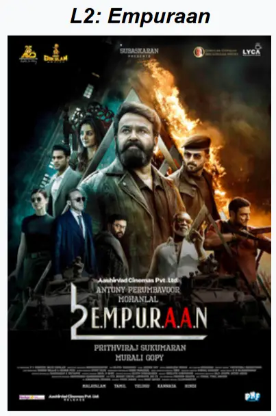 L2: Empuraan is a 2025 Indian Malayalam-language action thriller film directed by Prithviraj Sukumaran and written by Murali Gopy. The second instalment in the Lucifer trilogy starring Mohanlal, it also has Prithviraj, Abhimanyu Singh, Tovino Thomas, Manju Warrier, Andrea Tivadar, Jerome Flynn, Indrajith Sukumaran, Suraj Venjaramoodu, Kishore, Eriq Ebouaney Lucifer only scratched the surface of Stephen Nedumpally’s double life.